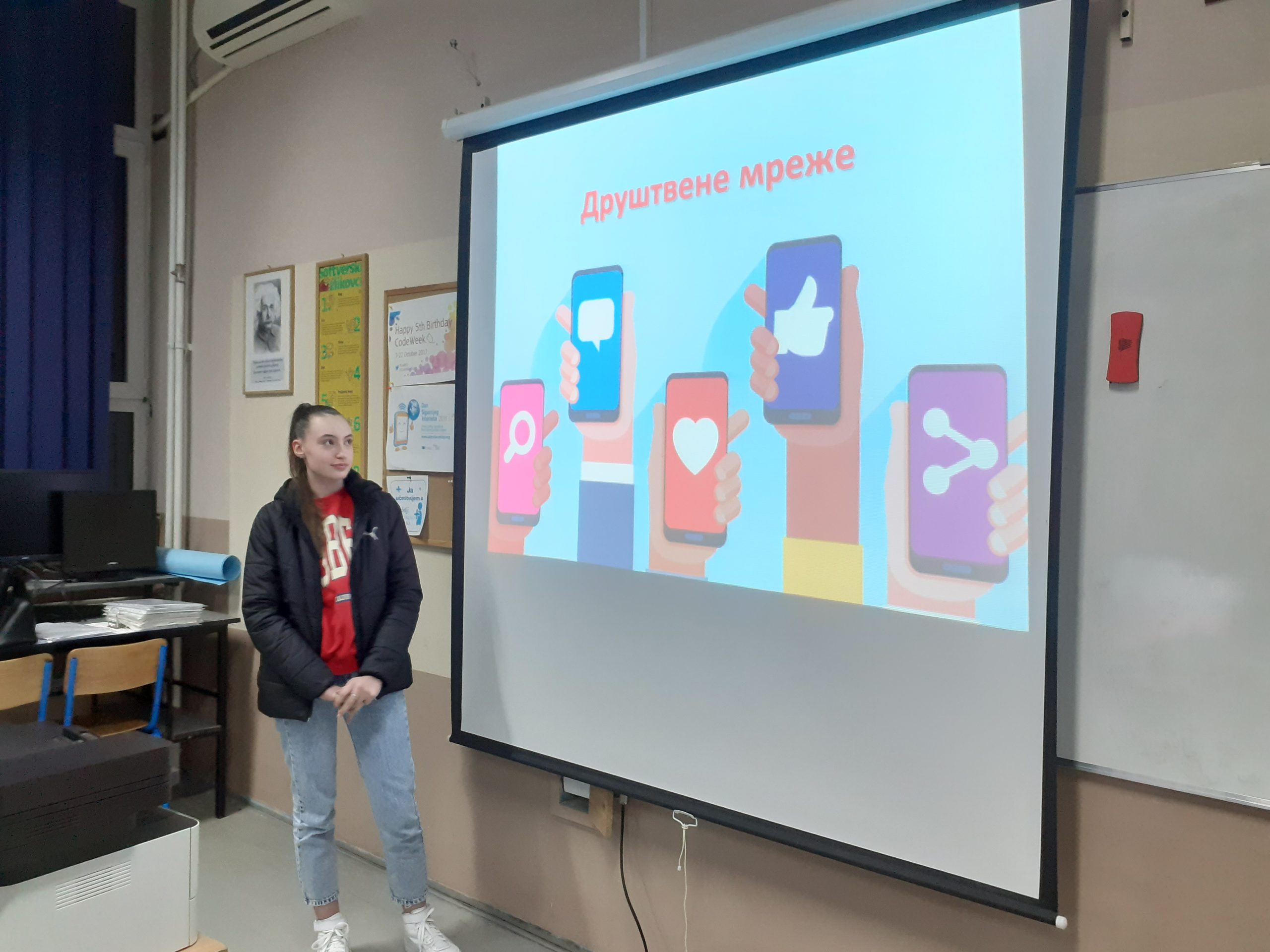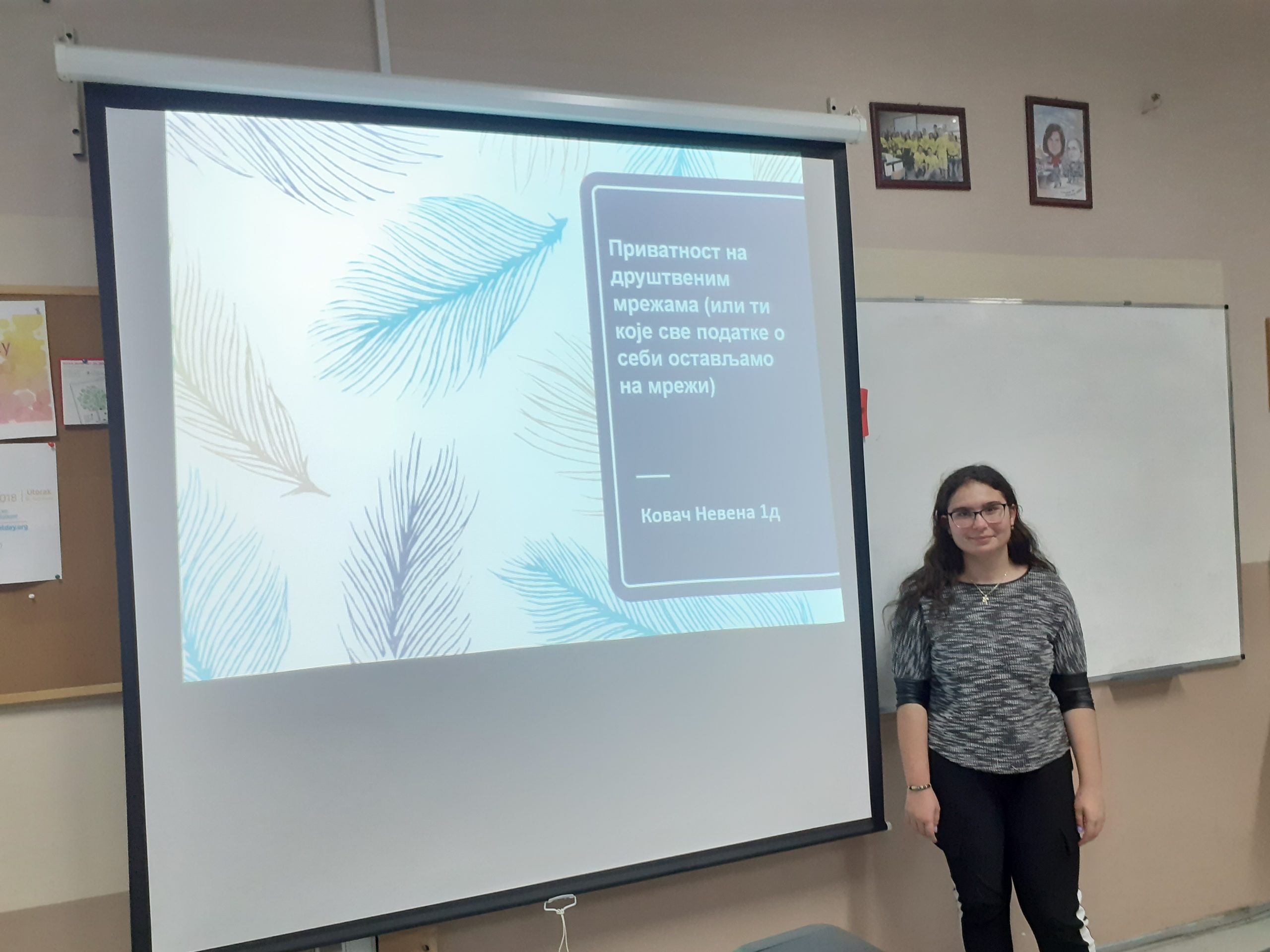 Наше пројектне активности су реализоване на часовима рачунарства и информатике у току новембра и децембра. Ђаци првог разреда су имали прилику да погледају презентације, које су припремили њихови вршњаци из одељења. Теме презентација су биле: друштвене мреже, шта интернет зна о нама, приватност на интернету, интернет преваре и правила понашања на интернету. Разговарали смо о онлајн комуникацији, ризицима на друштвеним мрежама и како заштитити профиле на њима.