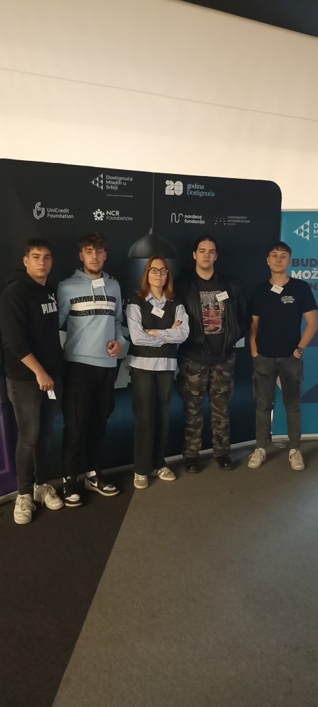Требало је осмислити производ или услугу која би омогућила запосленима да буду ефикасни у својим радним задацима и уживају у флексибилним могућностима савременог доба. Тим у којем је своје место нашао и наш Никола Мргић из 4ц одељења је уз помоћ ментора и коришћење колаборативних алата, креирао решење које одговара стварним потребама корисника и освојио 3. место на овогодишњем такмичењу. Њихово решење – звучни панел, је одговорио критеријумима изазова у пословном приступу, иновативности, креативности и начину презентације.