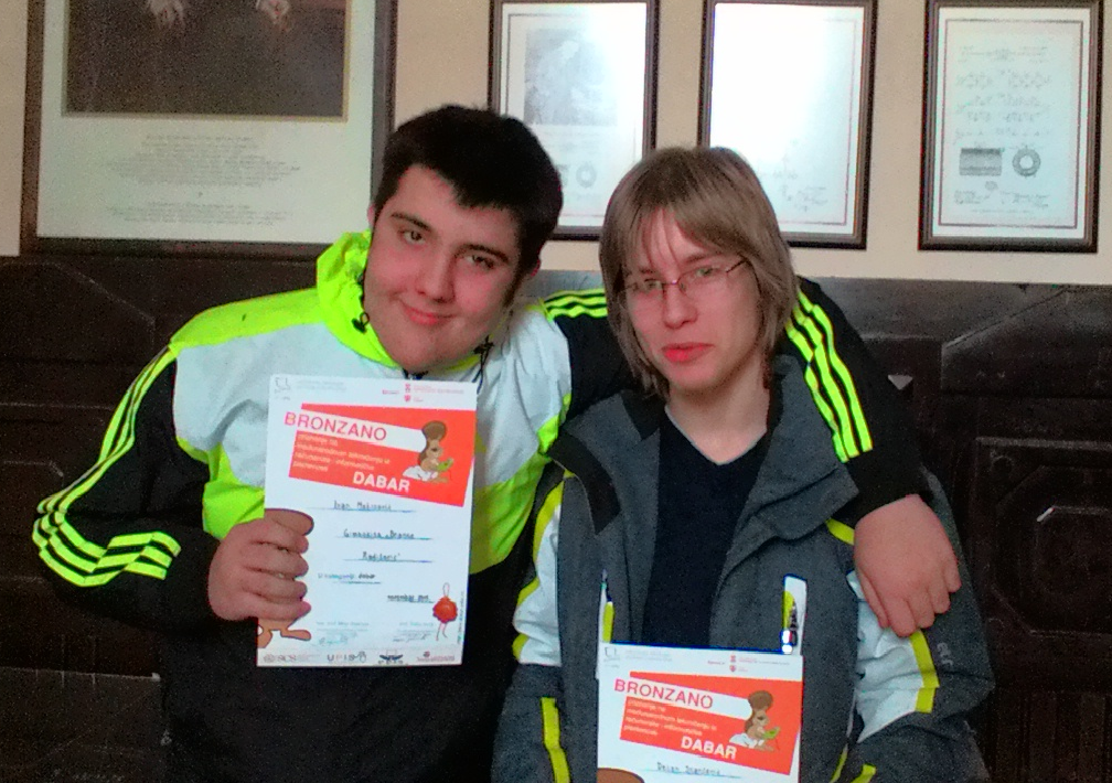 Нашу школу на овом такмичењу представљали су Иван Мештровић 1б и Дејан Станчевић 2д. Они су се такмичили у категорији “Дабар” за ученике 1. и 2. разреда средње школе.